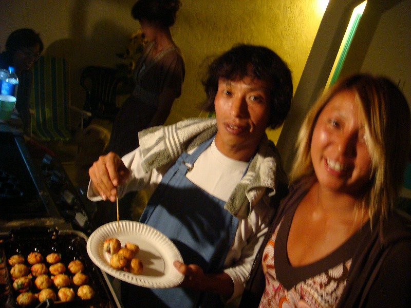 ち波さんがたこ焼きパーティーに招待してくれた。本場のおいしいたこ焼きを作ってくれたひろさん。