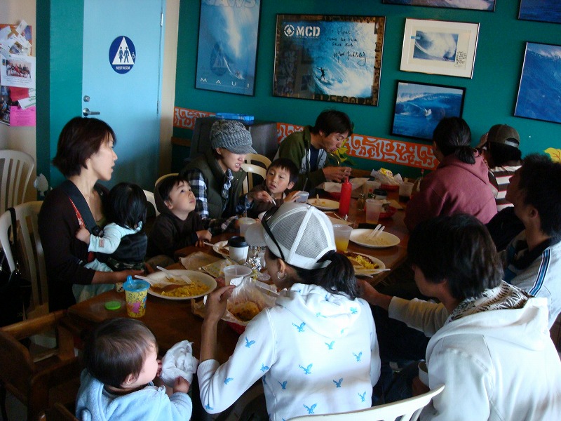 Lilyたちの最後の週末なので今朝もリーフに大集合したが、昨日より時化ていたので海をそこそこに引き上げ、パイプスカフェでアメリカンランチ。
