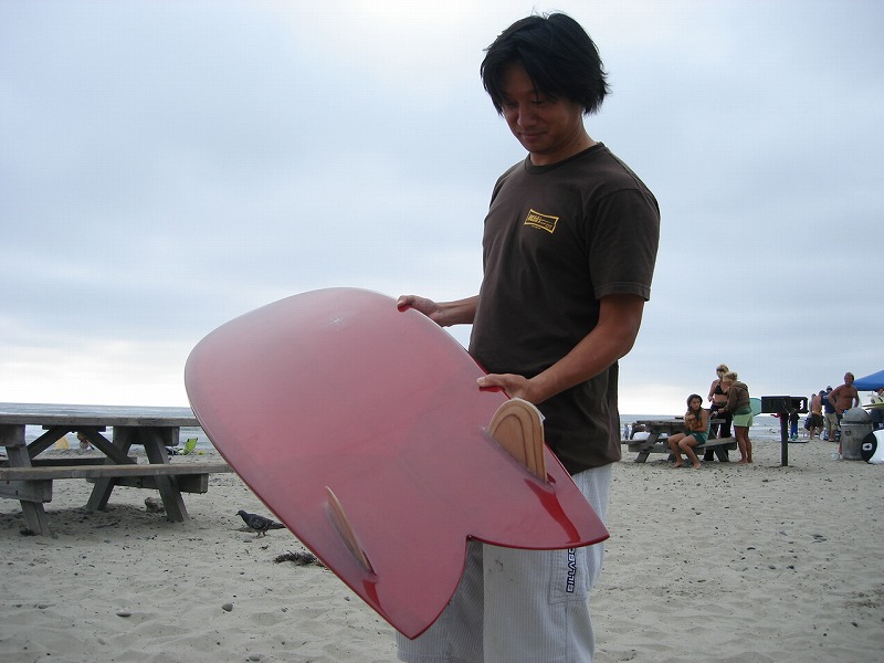 彼のユニークなボードコレクションやスピード感あるライディングが見れなくなるのは寂しい限り。思えば、カズに譲ってもらったすばらしい板のお蔭でサーフィングが上達したなあ。