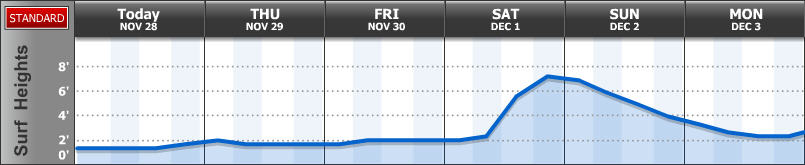 北西からの大型うねりが入り始める12月。その第1弾が、いきなり師走初日に届きそうです。