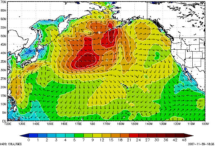 NPACで発達中の大きな低気圧がこの緯度と勢力を保ったまま進んでくれば、来週半ばにはさらにダブルアップして14フィート強の特大スウェルが入るかもしれません。