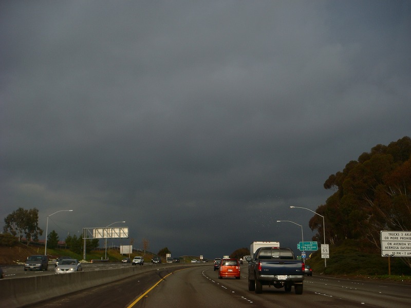 ハイウエイ5号線を北上中。すごい雨雲です。