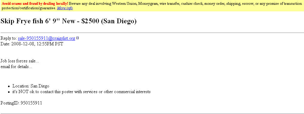 世界的な同時多発不景気は深刻な事態だが、昨今の人員削減の余波をクレイグスリストの売却理由欄にも垣間見た。
