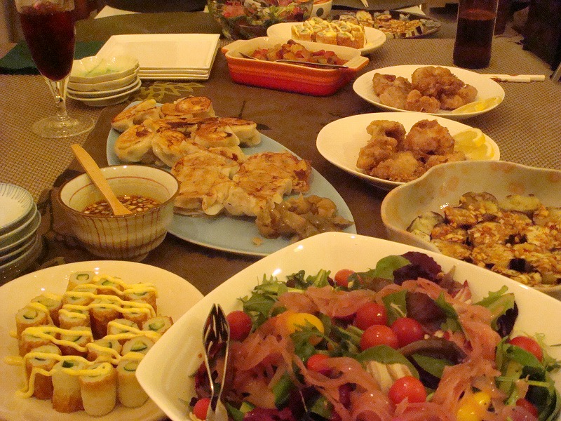 ビール、焼酎、日本酒に赤ワインと、仲間とのありがたい時間です。