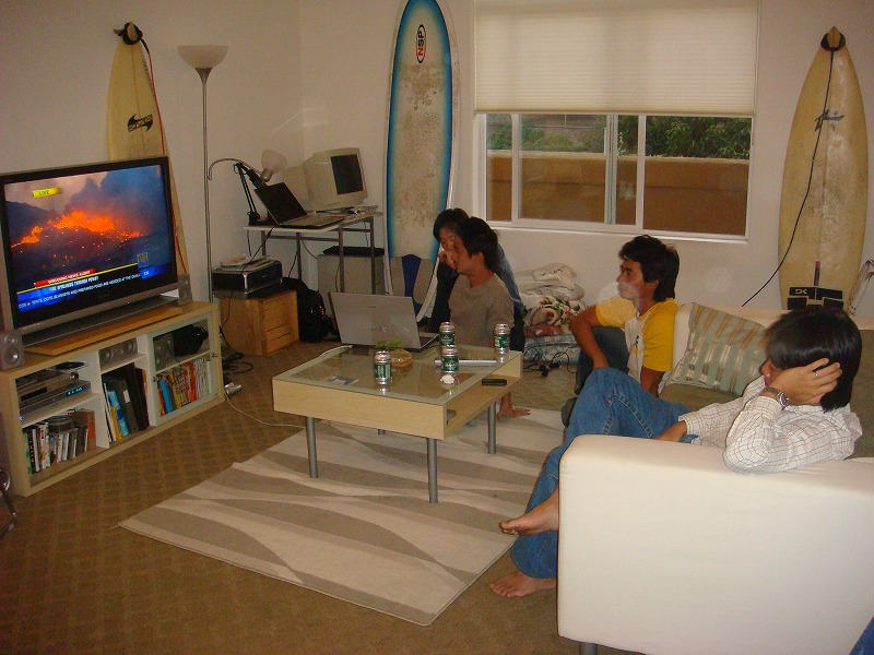 よかった無事で。家にも今日からエスコンディードの友達がきてるよ、彼女の家の周りの家は全焼したんだって、明日様子を見に行くみたい。家の辺りは風も吹いてないんだよ。波がよくて休みなのに行けなくて歯がゆいね。
