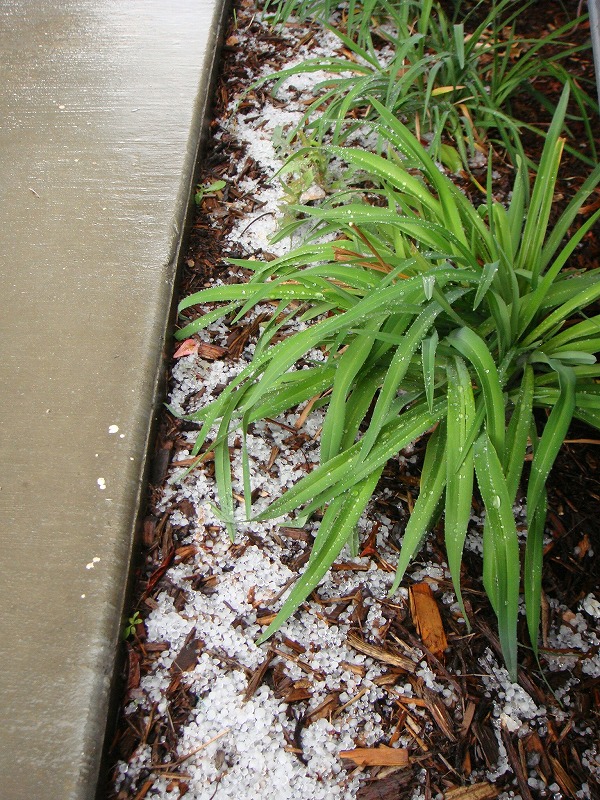 大雨、霰、雷、虹、また雨と、変化の激しい天気。ちなみに直径5ミリ以上だと雹(ひょう)らしいです。