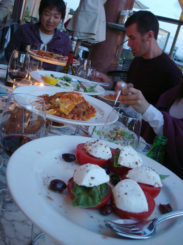 予報に反し夕方には晴れ間も出てきて、デルマーのイタリアンで夕陽を見ながらBDディナー。