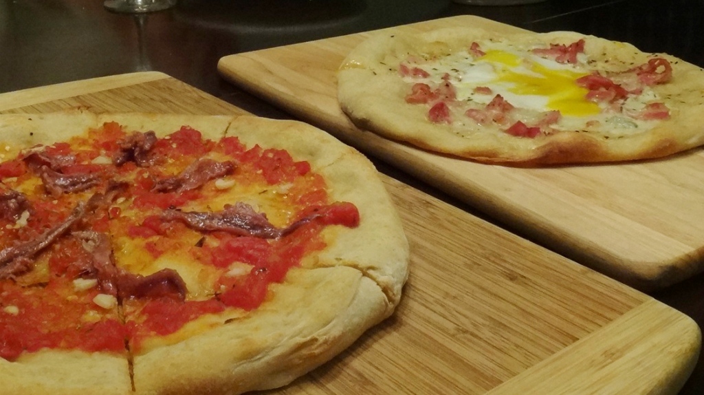 すると絶妙なタイミングでアンチョビと半熟たまごのせカルボナーラ風ピザが登場!