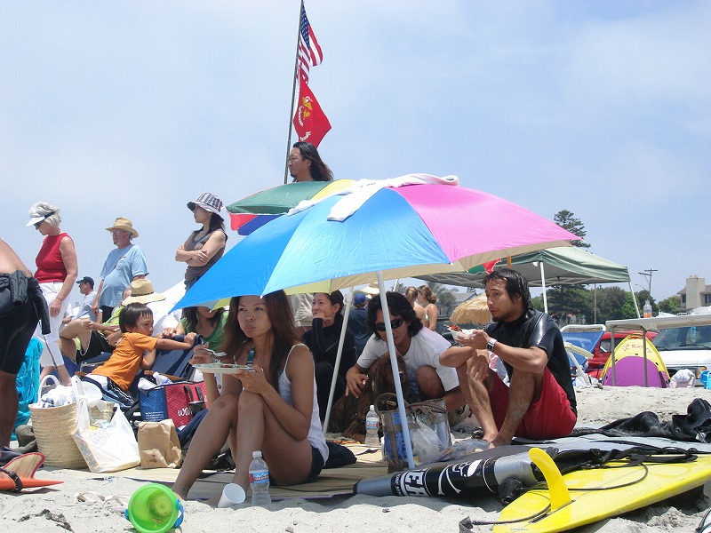 夜はJohn宅から歩いて数秒のビーチで花火ウォッチング。夏の花火は風情があっていいですね。