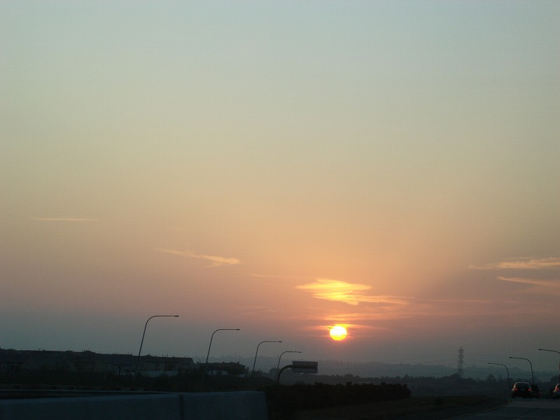 ビーチBBQ会場をあとにし、移動中に見えた大きな夕陽。