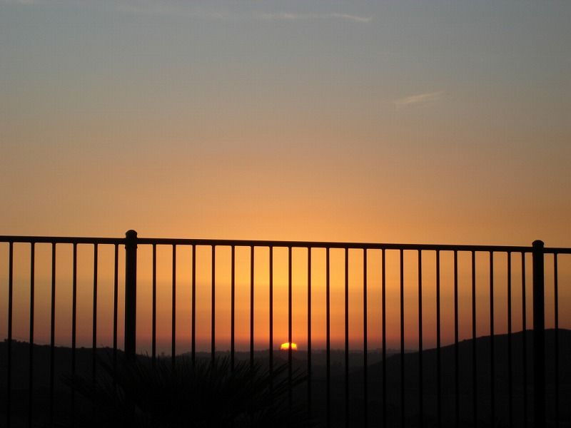 裏庭から見える美しいサンセットに魅入る。