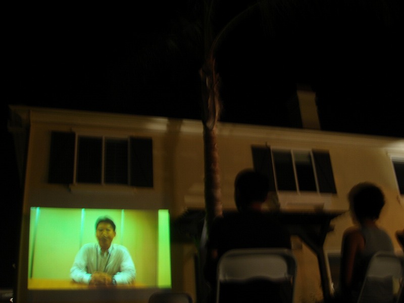 家の壁を使い、サザンオールスターズの曲に乗せて2人に捧げる屋外シアター風スライドショーがスタート。Nobutatsu作品です。