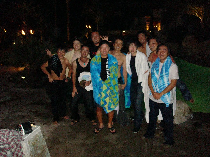 ザッパーン!そして、次々と服のまま投げ込まれる男性陣。