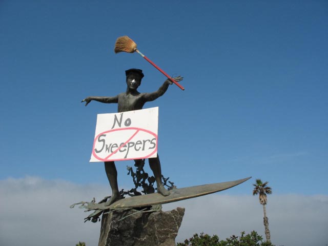 地元ですっかり「カーディフKOOK」の愛称が定着したこの銅像に、箒(ほうき)とこんなメッセージが添えられていた。