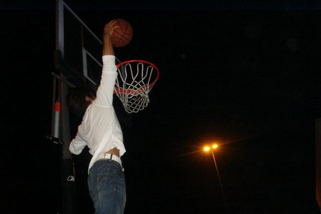 皆勤賞の甲斐あってついにスラムダンク!じつはゴールポストを低くしているんだけど、ちゃんと自力で飛んでいて気分はMJです。(笑)