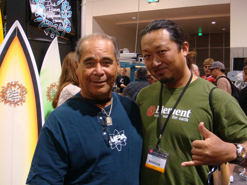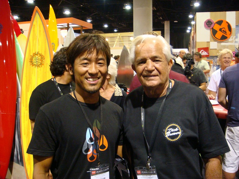 最初にお目にかかったのは、レジェンドシェイパーのディック・ブリューワ。