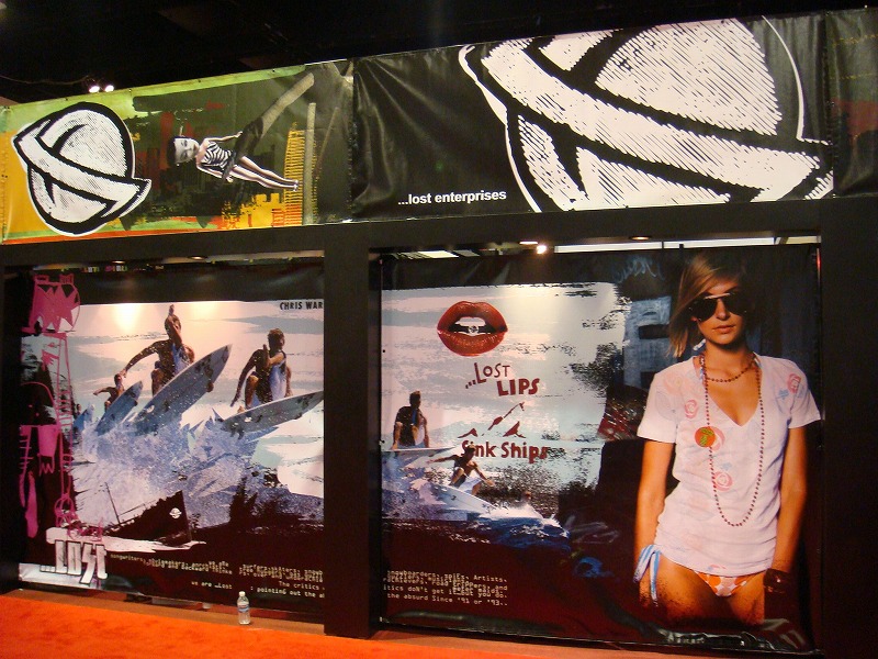 1R後、Action Sports Retailerの入場許可証バッジを譲ってもらったので初見学。サーフィング、スケートボード、スノーボードと横乗り系スポーツのトレードショーです。