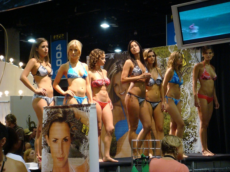 後方ステージで行われていた水着ショー(笑)。会場内は美しい女性ばかりです。