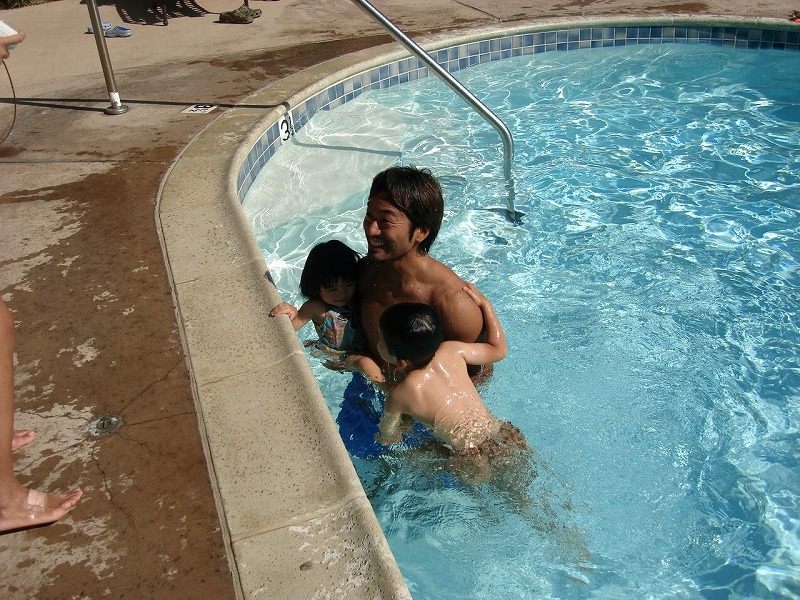 つい数時間前に日本から着いたばかりだが、大好きなプールでちょうどいい時差調整ができたみたい。