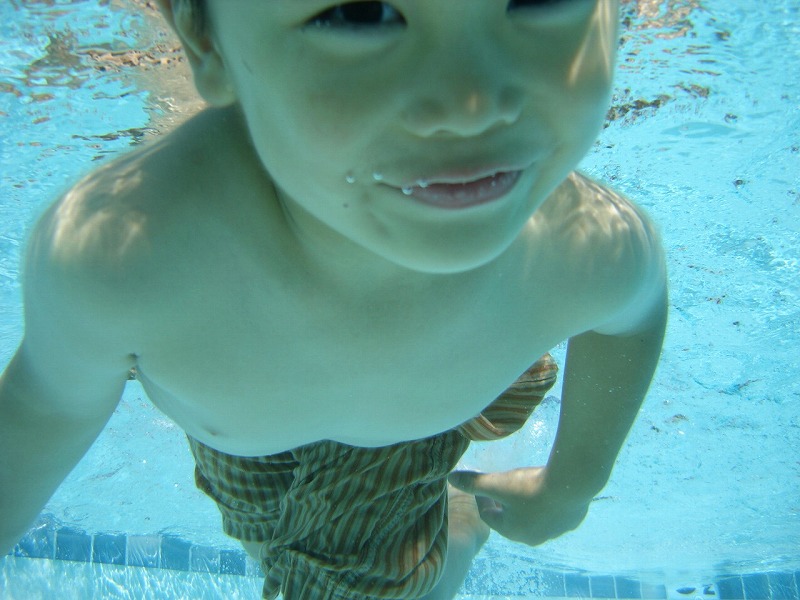 で、兄に負けじとプールにダイブしてしまった妹さん。水に潜ってもご覧の通りで全く動じない。(笑)