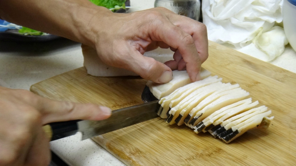 一方北村さんは自家製の燻製サーモンとビーフの準備に取りかかり、