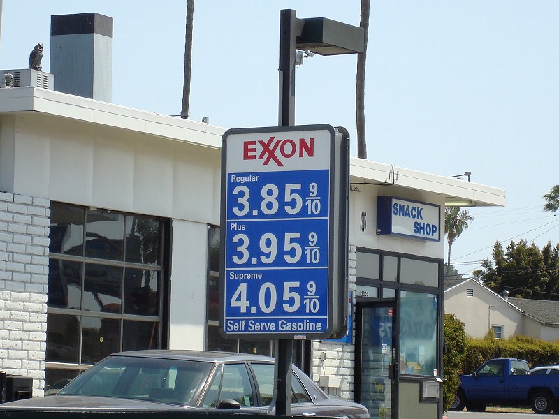 ガソリンの高騰が続いていて、ついに1ガロン4ドル台の表示がちらほら。それにしても高い。