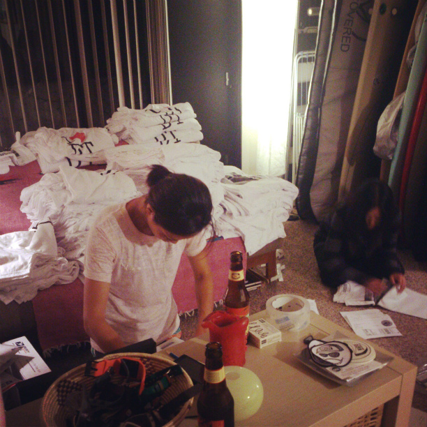 お見事な流れ作業で梱包業務完了。深夜までご苦労さま〜。
