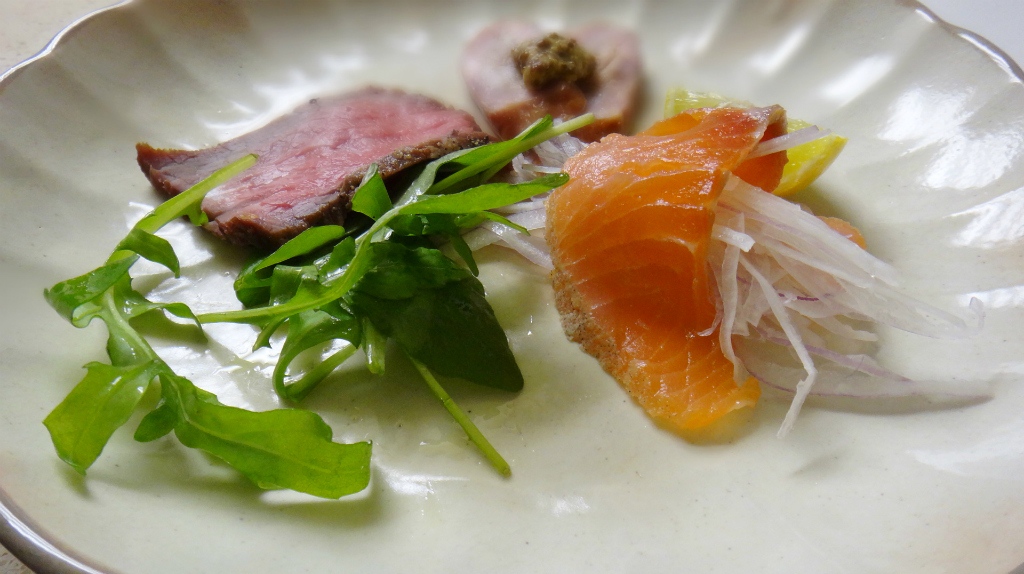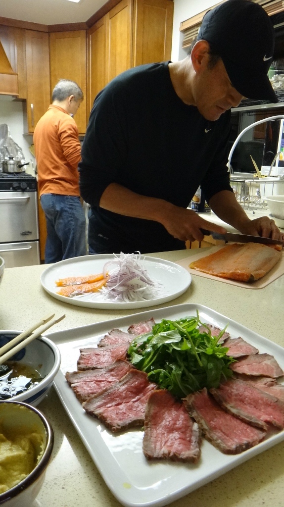 一方北村さんは自家製の燻製サーモンとビーフの準備に取りかかり、