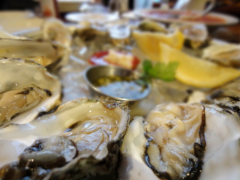 遅めのランチに新鮮なオイスターとクラムチャウダーをいただき、