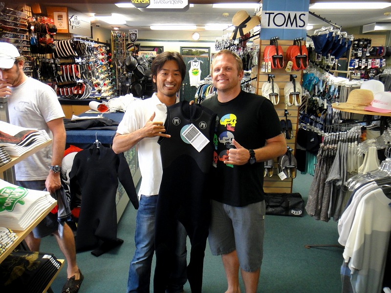 パタゴニアR3は夏場にはさすがに暑すぎるのでローカルブランドのサマーギアを購入し、マテュース社兼MITCH’Sラホヤ店ストアマネージャーのマットと記念撮影です。