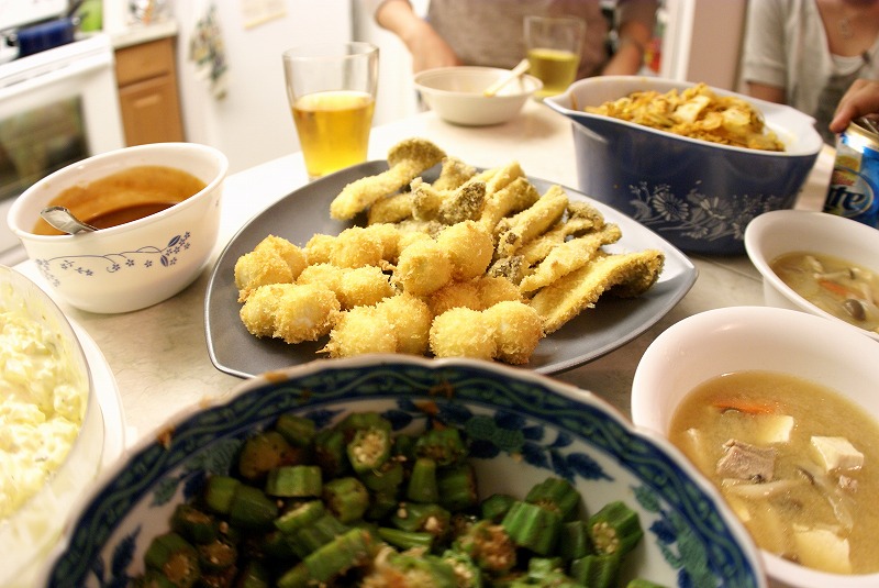いつもおいしい特製お好み焼きをごちそうしてくれるひろさんとめぇちゃんですが、今夜は黄金フライの大盤振る舞い。