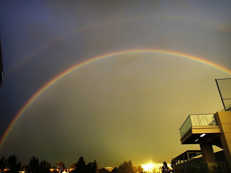 猛暑の次は雷雨とファンキーで不安定な大気ですが、あれよあれよと色鮮やかで見事なダブルレインボーが架かりました@オフィス。