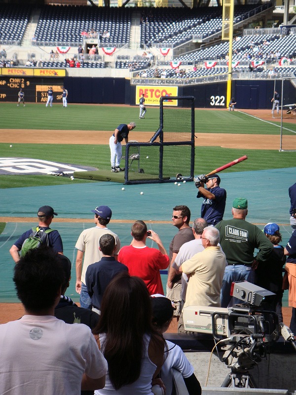 お目当てはもちろんイチロー選手で、元野球部というTomoyukiも彼のアップに釘付け。クラークフォームのTシャツが見えるあたりはいかにもSDらしいですね。