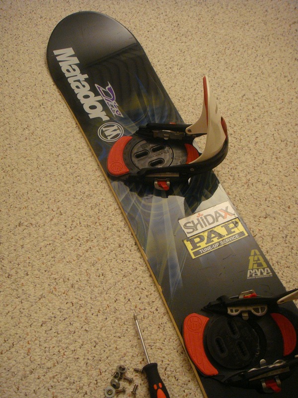 当時Capからもらったステップイン式バインディングを早速セットアップ↓。これは俺のスノーボードデビューを飾った記念すべき板なので、今でも大切に使っています。