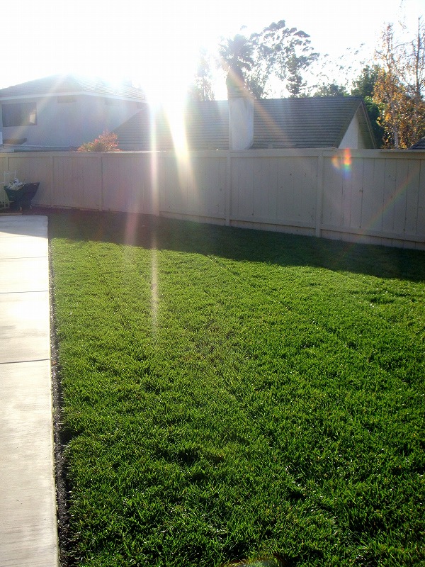 強いオンショアとバクテリア指数の高そうな海に入るのをあきらめ、晴れ間が広がっているうちに芝刈り完了です。