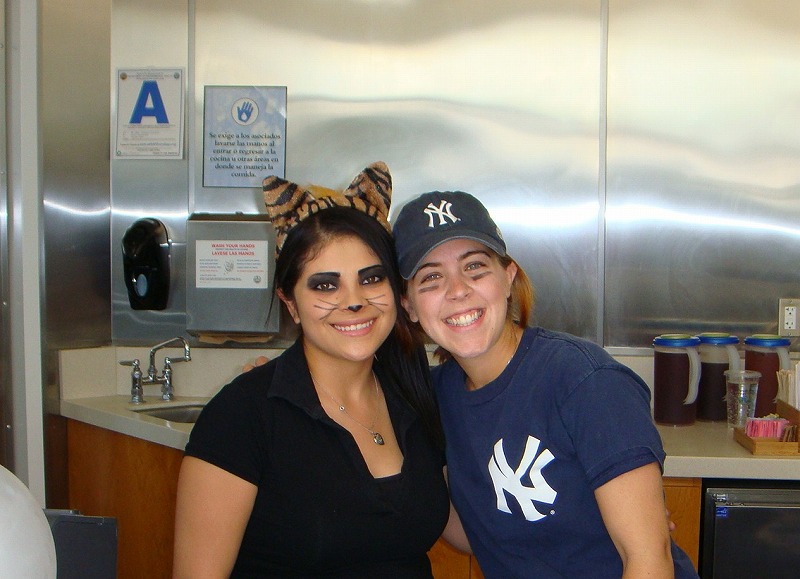 オフィスビルのスターバックスガールズがこんな衣装で対応してくれています。Go Yankees
