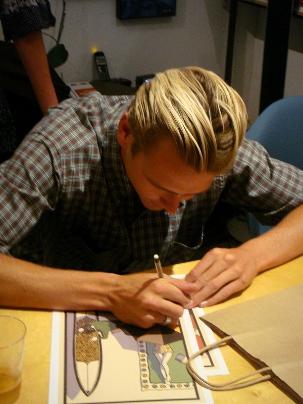 Johnが購入したポスターにもかわいいアートを施すピックル。