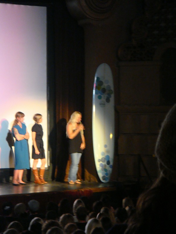 アシュリー(・ロイド)は、環境にやさしいソイベースのブランクスからシェイプした9’4”のダイヤモンドテイルを披露。写真中央はティファニーです。