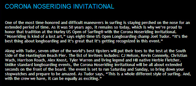 彼以外にもジョエル、クリスチャン、CJ、アレックス、ピックル、ハリソン・ローチ、レジェンドのハービー・フレッチャーと世界屈指のノーズライダーが名を連ねていて、まさに夢のオールスター饗宴といった感じです。