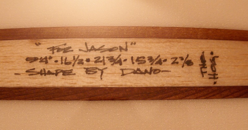 ミッチ・アブシャーの友人という売り主のジェイソンもすごいタトゥーで、彼曰くそのミッチもリーフでこの板に乗り絶賛した様子。