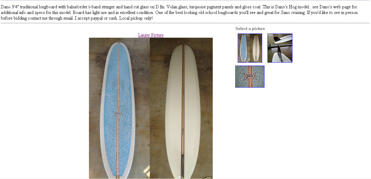 ロングボード日和の続くサンディエゴ。ふと中古ボードを検索していたら、こんな求心力のある板に遭遇してしまった。