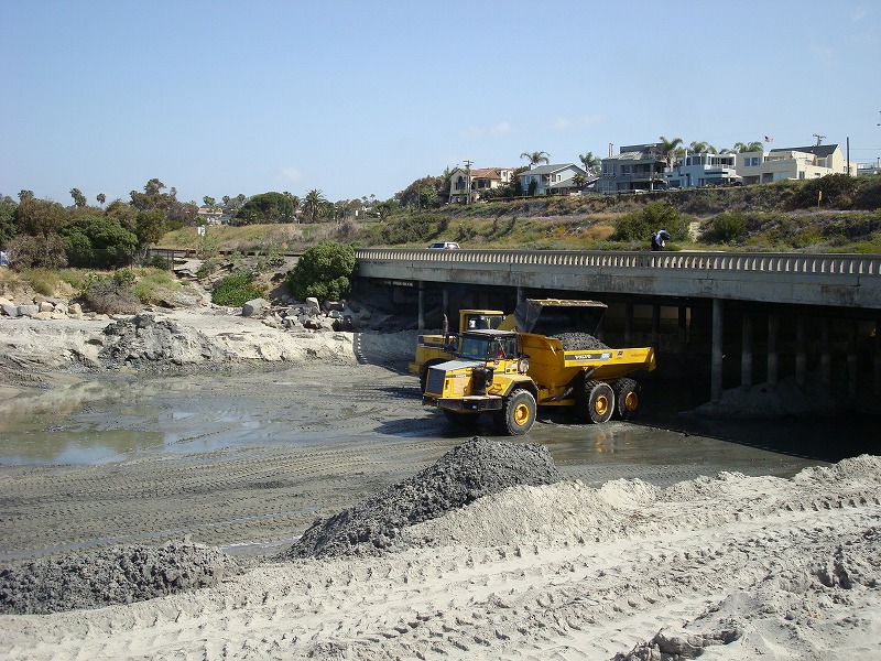 河口に堆積した砂の大移動で、川底からすごい異臭がしている。