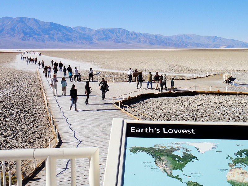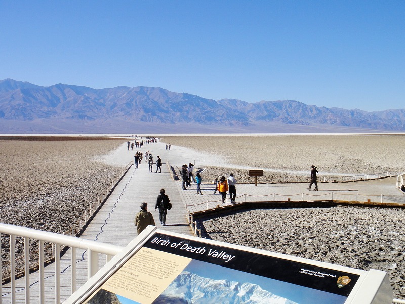 最後にアメリカで最も海抜の低いバッドウォーターへ。1泊2日のすばらしきキャンプツアーでした。