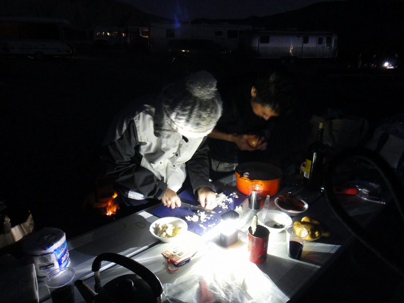 感謝祭にちなんでターキーならぬ見事なチキン丸焼きを調理したTomoyuki。それはそれは香ばしく、満天の星空と赤ワインがさらにそのおいしさを引き立ててくれました。