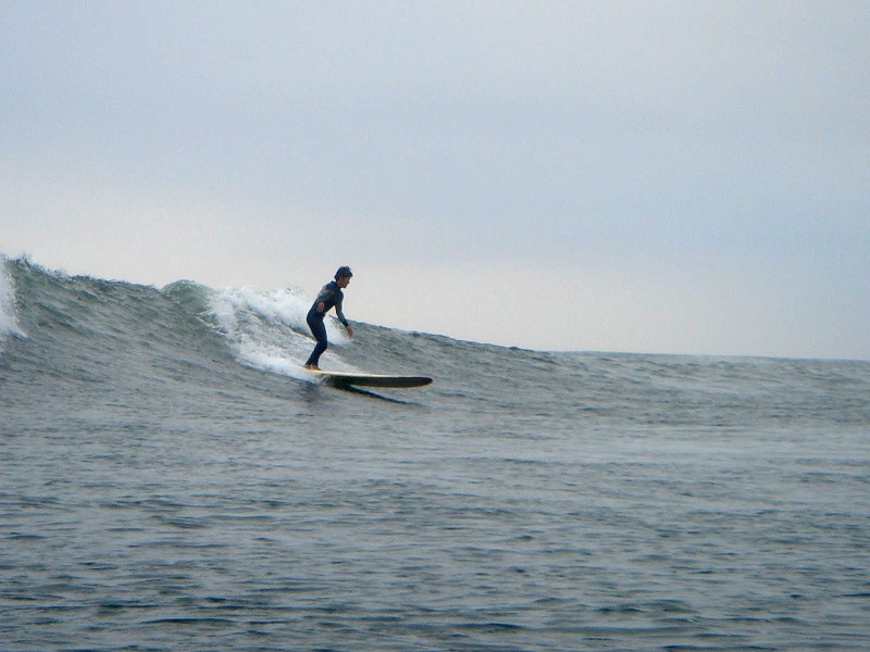 今日は10フィートの板に6.5インチのフィンを装着し、スキップばりのセットアップに挑戦。