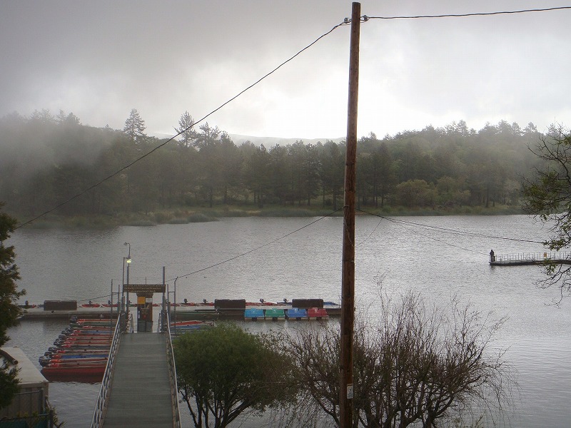 マス釣りに挑戦しようと早朝のキュヤマカ湖にやってきたが、この日のジュリアン地区は霰や小雪が降り出す始末で、温度計を見ると34F(1C)を表示していた。