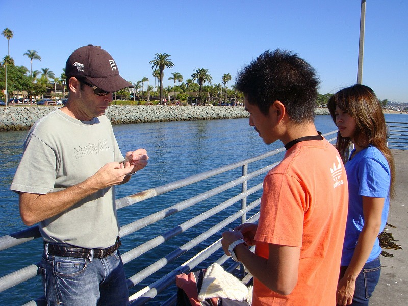 そこへ、これまでのさんざんな釣果に同情したローカルフィッシャーマンが現れ、我々の仕掛けを調べると釣り針と錘と大量のベイトを買ってきてくれた。