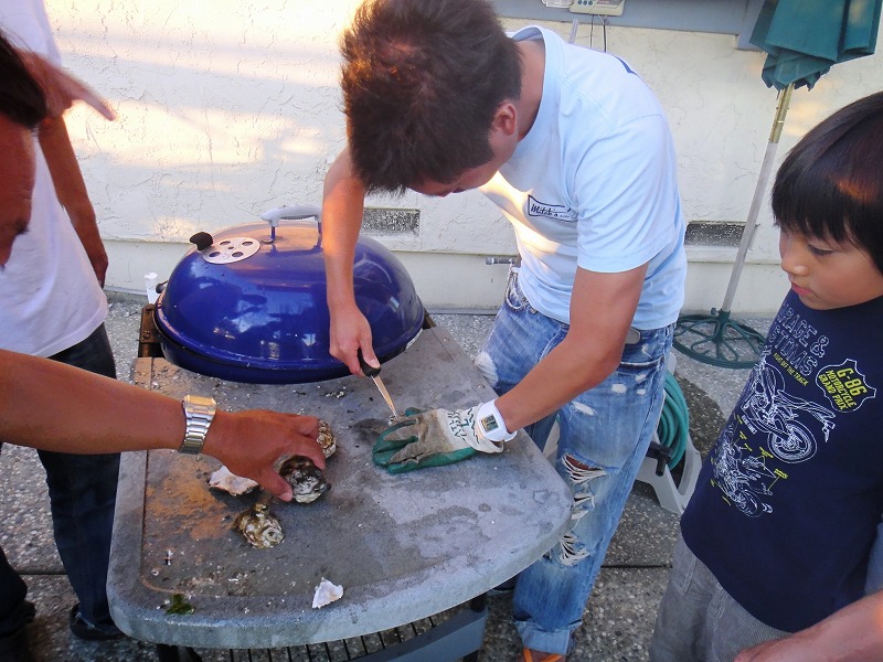 師匠のカキの開け方をじっくり観察し、