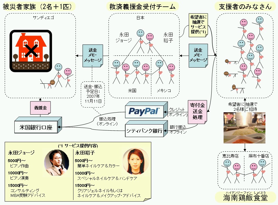 この惨状を受けて、日本やメキシコに散らばっていった元サンディエゴ在住クルーが大切な仲間のためにわずか短期間で救済義援金プロジェクトを立ち上げたのです。その名も、