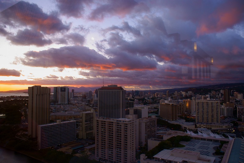 コンドミニアムの屋上で最後の夕焼けに魅入っています。